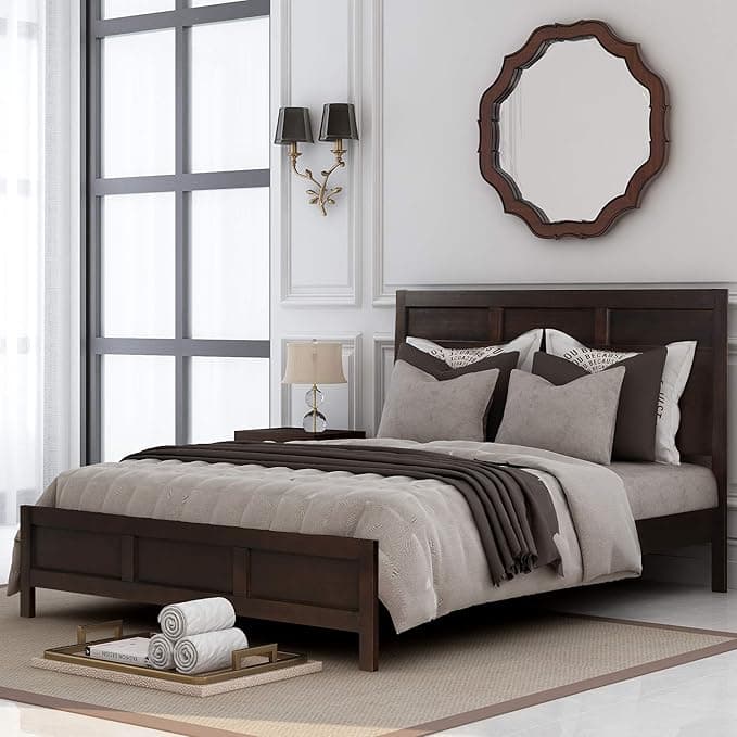 👍This 3 pieces bedroom set includes queen size platform bed + 2 night stand. Clean lines, simple silhouettes and undeniable durability, the wood platform bed with headboard adorns any interior with rustic, timeless charm. This platform bed is constructed of high-quality pine wood, 4 additional central support legs have been added to ensure that the bed can be durable and has a high bearing capacity. The frame of the bedside table is made of solid wood frame, which is strong and durable, and is emphasized by subtle details such as antique pull knob hardware, which brings attractiveness and warmth to your bedroom. The bed is 8.5" off the floor, clearance under the bed for linens, out-of-season clothing or other items, provide you with enough storage space. The drawers and shelves of the bedside table can be used to put some books, magazines, remote controls, etc., to add a certain amount of storage space to your bedroom. Come and take this three-piece set home to decorate your bedroom.