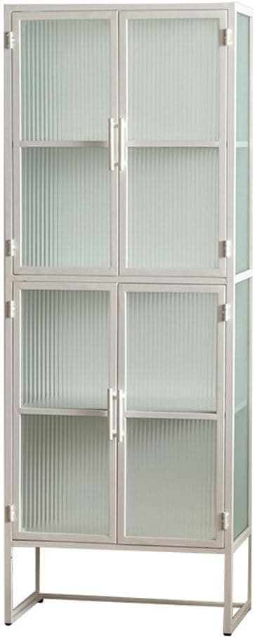 ULTRAWAVE Gabinete de buffet Armario de entrada de hierro forjado blanco Gabinete de zapatos Gabinete de almacenamiento para sala de estar, gabinete lateral moderno y simple de vidrio aparador de
