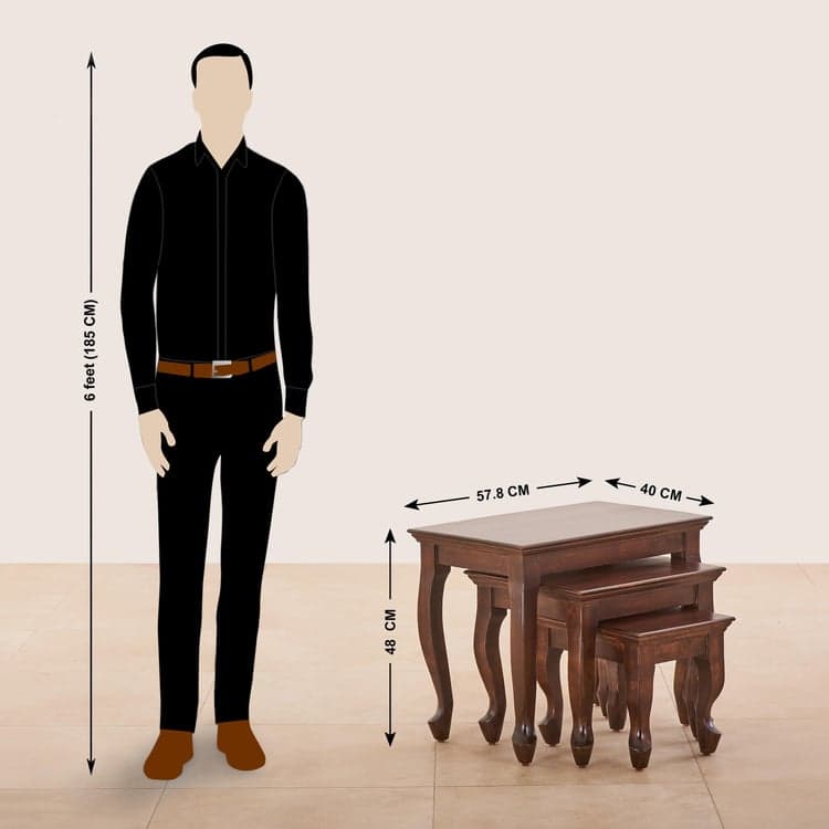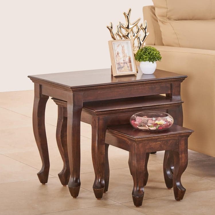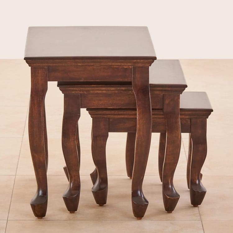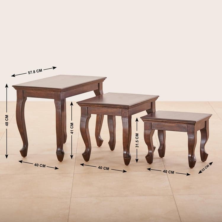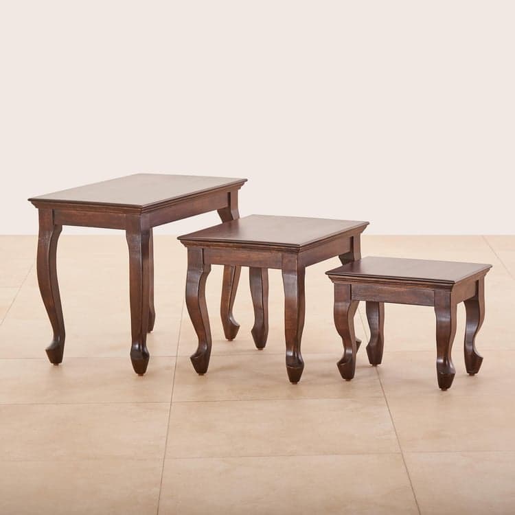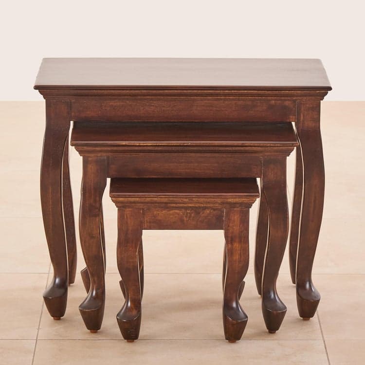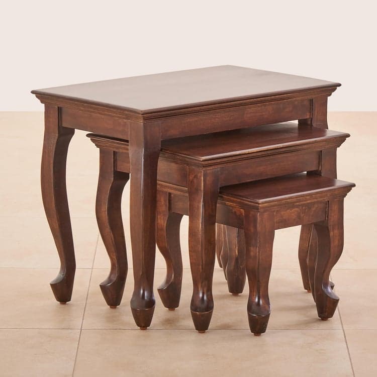 Add elegance to your living space with this set of nesting tables. Constructed from mango wood, this set features a rectangular top with elegantly carved legs. It includes 3 tables that feature a lacquer finish to enhance its durability.