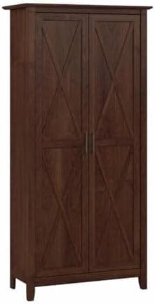 The Bush Furniture Key West Tall Kitchen Pantry Cabinet with Doors and Shelves offers an organization solution that brings a touch of casual style to any residential space. Featuring a design that’s as versatile as it is practical, this freestanding kitchen cupboard provides an ideal way to store food and drinks, dinnerware, cooking equipment, and more. Two shelves are fixed for stability while three can be raised or lowered to accommodate items of various sizes. Each shelf supports up to 25 pounds, so storing appliances, equipment, and bulk food items is never a problem. The stable design also includes wall attachment hardware for family-friendly safety in any kitchen or dining area. A post leg design, unique X pattern accents, and a slightly distressed finish convey a casual appearance that works well with cottage, coastal, and modern farmhouse styling. This tall kitchen storage cabinet with doors has been meticulously tested to meet or exceed industry standards for safety and performance and is backed by the Bush Furniture 1 Year Manufacturer’s Warranty. See the full Key West Collection for coordinating items available, including storage, home office, living room, and bathroom furniture.