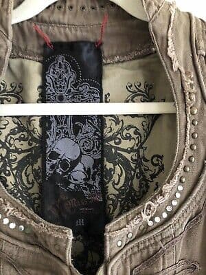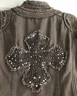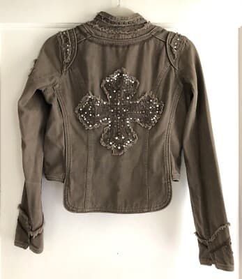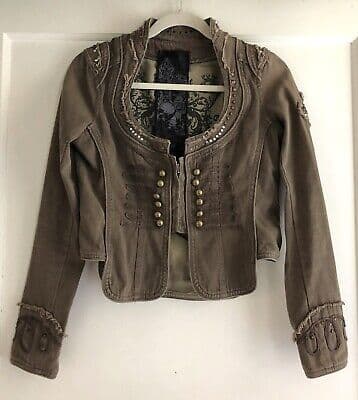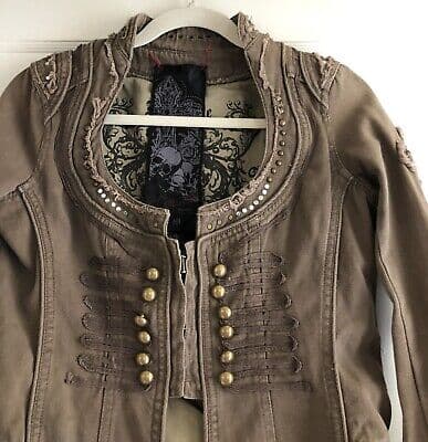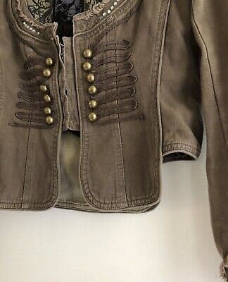 Miss Me Embellished Rhinestone Olive Brown Military Jacket Size M