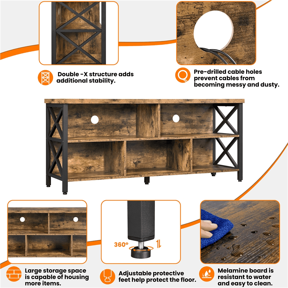 Alden Design Modern Industrial TV Stand for TVs up to 65 Inch with Storage, Rustic Brown
