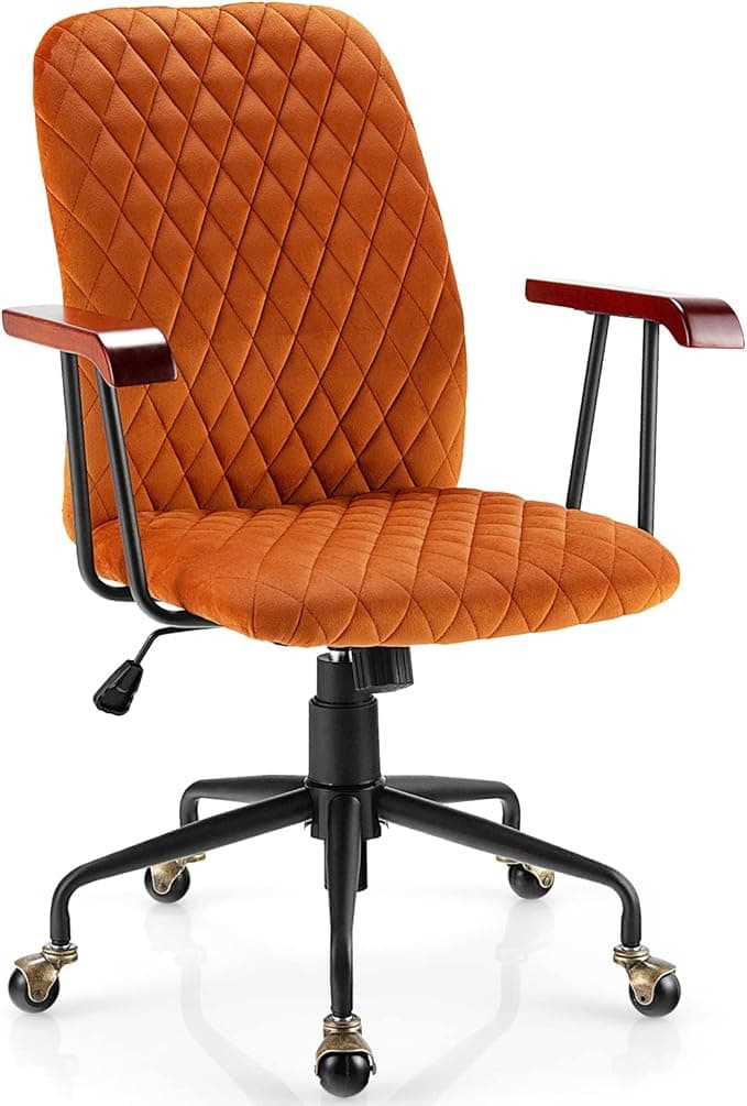 Buy COSTWAY Orange Velvet Office Chair, Upholstered Home Leisure Chair with Rubber Wood Armrests & 5-Claw Metal Base, Vintage Mid-Back Computer Desk Chair for Adult, Home, Office, Study: Home Office Desk Chairs - Amazon.com ✓ FREE DELIVERY possible on eligible purchases