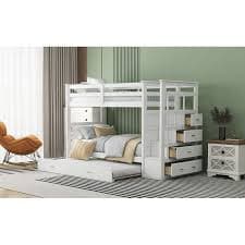Twin Bunk Bed with Trundle, Staircase, 4 Storage Drawers, Solid Wood Frame for Kids and Toddlers, White - Walmart.com
