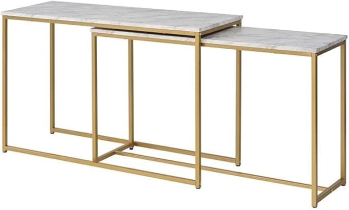 Furniture of America Dallan Metal 2-Piece Nesting Sofa Table in Gold and White