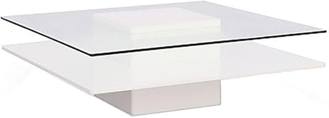 Limari Home Cadmus Collection Modern Living Room Double Layer Square Coffee Table with Glass Top, White