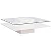 The Cadmus Coffee Table is the perfect modern piece. The multitiered table has contrasting materials that create visual interest and texture. The clear tempered glass comprises the top layer of this beautiful coffee table while a white high gloss surrounds the bottom layer. Dimensions: W39" x D39" x H14" From Floor To Bottom Shelf: 7" Space Between 2 Shelves: 4.75"