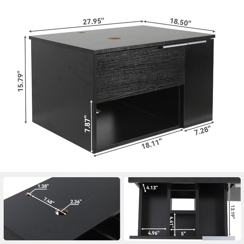 28-Inch Bathroom Vanity, Modern Black Wall Mounted Bathroom Vanity With 1-Door And 1-Drawer, Modern Floating Bathroom Cabinet With Bathroom Boat Clear