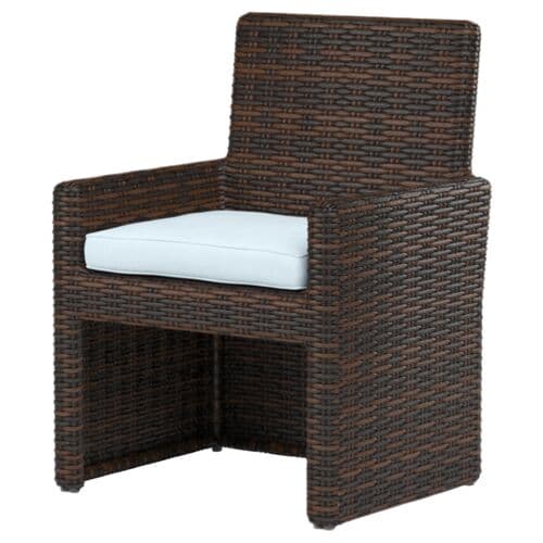 Expertly wrapped in a rich multi-colored weave, the Montana Dining Chair mimics natural materials with low maintenance in durable virgin resin wicker. Absolute comfort is provided with its generously sized frames and advanced seating support.