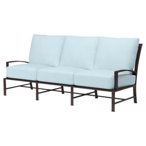 The Ventura Sofa is crafted from high-quality, low-maintenance aluminum designed to endure over time. This sofa features a gently curved X back and a seat scaled for comfort, complemented by straight channel legs and subtly curved arms. It boasts a fully welded, scratch-resistant powder-coated aluminum frame, weather-resistant high-resiliency foam cushions, and commercial quality construction.