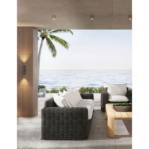 Sylvian Outdoor Aluminum/Resin Wicker Oversized Club Chair - Dark Wood | Lounge Chair, Armchair - Brown - Comfortable, Sturdy, Durable