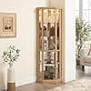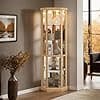 CKEASEAN 70" Curio Corner Cabinet, Lighted Glass Display Cabinet, Tempered Glass Door, Corner Display Cabinet Bulb Inclued, China Cabinet Rack for Living Room (Light Oak, 16.5" L 16.5" W 70" H)