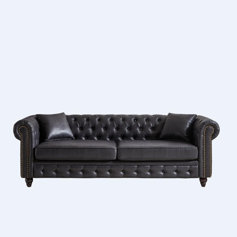 Z-joyee 85.5 in Wide Rolled Arm Faux Leather Rectangle Modern Upholstered Sofa in Black P-S202200165 - The Home Depot