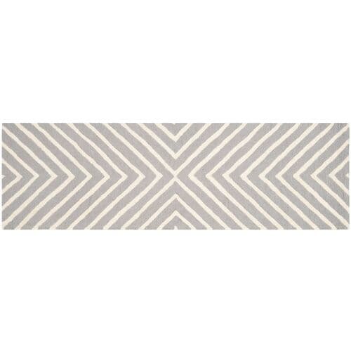 The bold, graphic design of this wool rug is softened by a neutral combination of gray and ivory, making it versatile for many decors. Using a rug pad is advised to prolong the rug’s durability and ensure it stays in place.