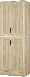 Hamesen Storage Cabinet, Kitchen Cabinet with Doors & Shelf, Tall Storage Cabinet for Bathroom, Living Room, Entryway,Natural