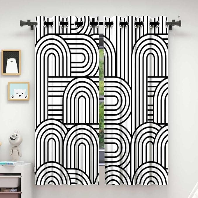 ZYMECH Black and White Farmhouse Curtains,Line Texture Geometry Checkered Closet Curtain Window Decor 110in Width by 96in Height
