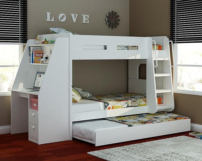 Sleepland Beds Olympic Bunk with Desk and Guest Bed (White)