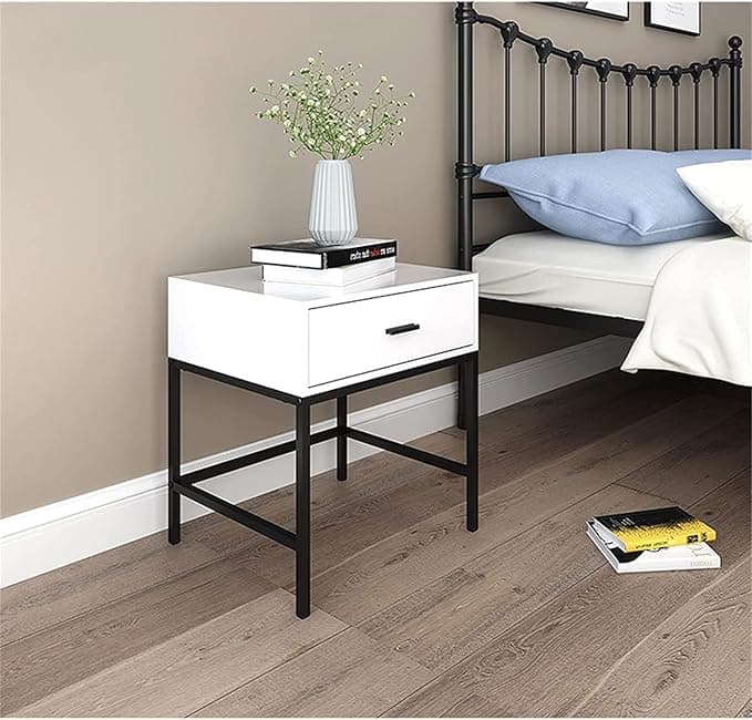 Comodino in Ferro Battuto con 1 cassetto, Comodino in Metallo Bianco, Comodino Moderno semplicità Nero, per Soggiorno Camera da Letto Cucina 45 * 38,5 * 50 cm (Colore: Nero)