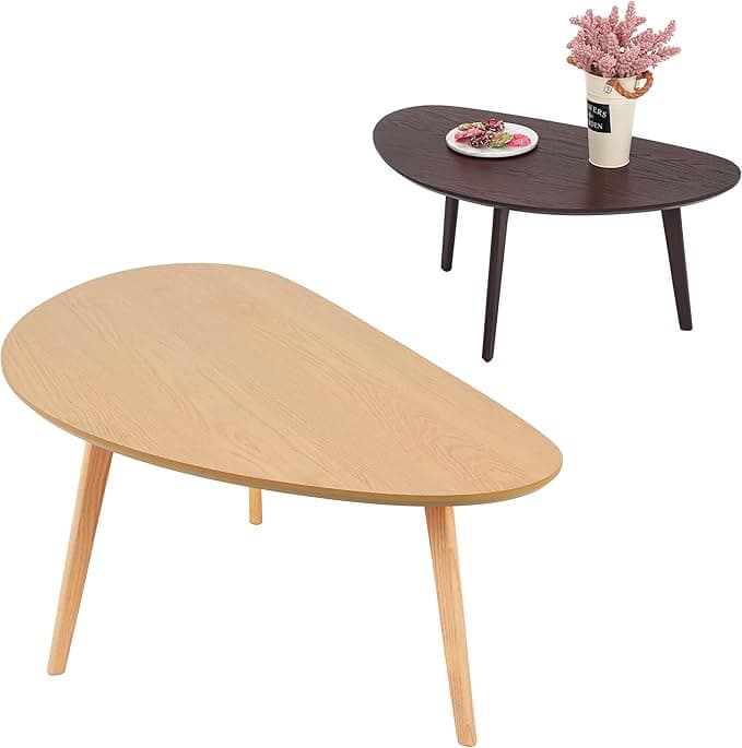 FIRMINANA Mid Century Modern Coffee Table, Oval Coffee Table for Living Room, Oval Kidney Coffee Table for Small Spaces(47.3inch+33.5inch)
