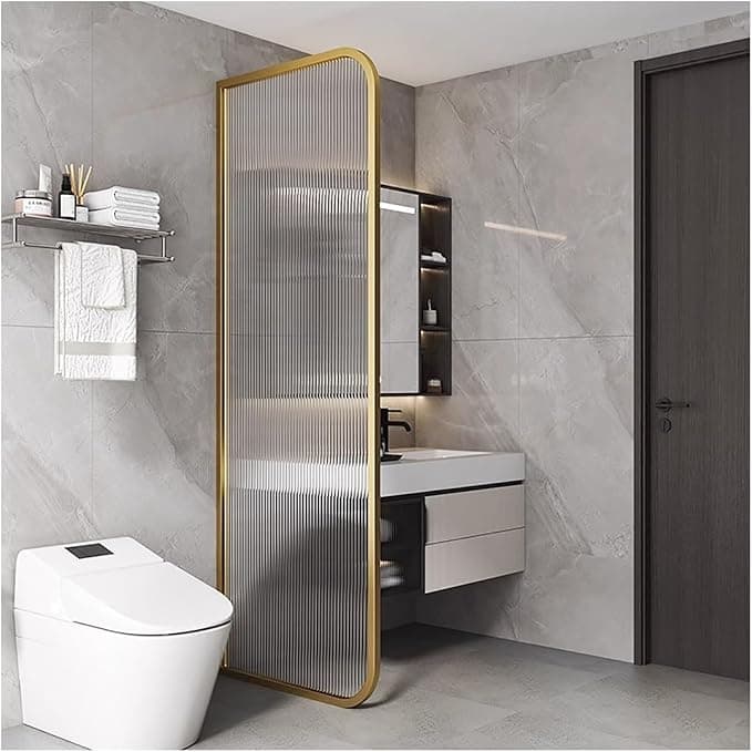 Room Divider Privacy Screen Urinal Partition Wall Divider for Restroom/Toilet/Bathroom, Floor-standing Wall Mounted Urinal Baffle Translucent Glass Panels, Waterproof Partitions Separator(Gold,100cm)