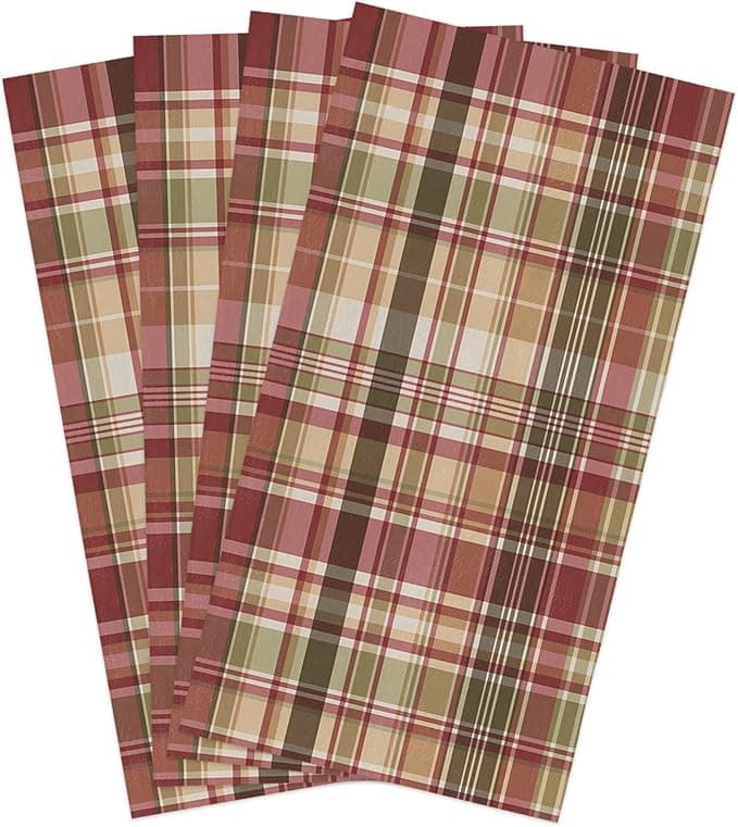 Chees D Zone Kitchen Towels Cotton Dish Towel,Fall Retro Tartan Stripe Soft Dishcloth Absorbent Tea Towel,Thanksgiving Vintage Plaid Reusable Washable Hand Towels 4 Pack