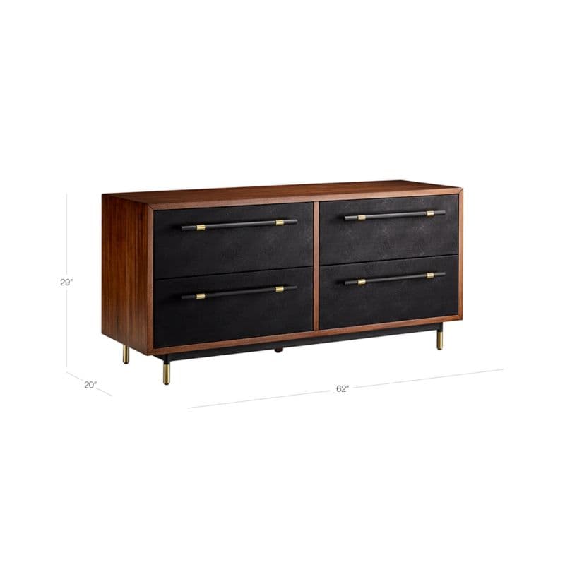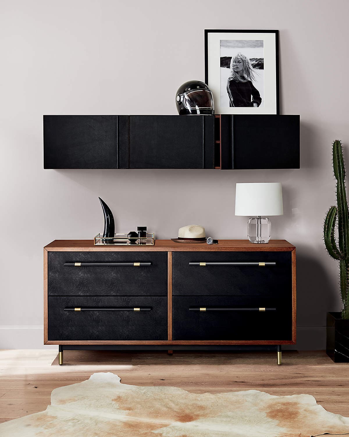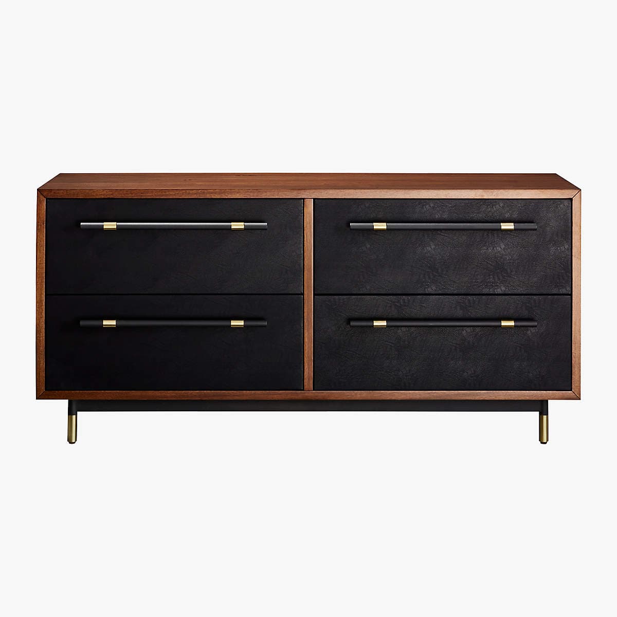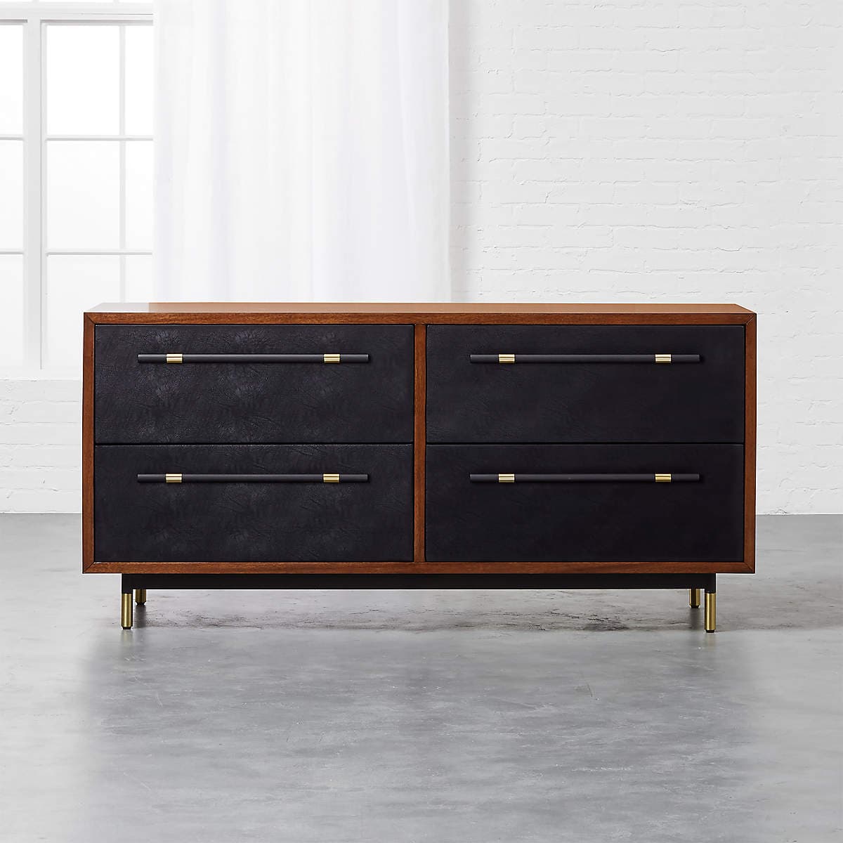 Oberlin 4-Drawer Black Leather and Wood Dresser + Reviews | CB2