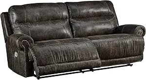 Signature Design by Ashley Grearview Faux Leather Power Reclining Sofa with Adjustable Headrest, Gray