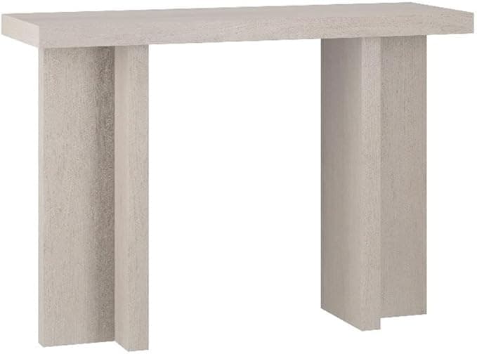 Simple yet eye-catching, this modern console table emphasizes bold, straightforward design. The double pillar style and T-shaped legs create geometric interest, while the natural wood-look finish adds texture and tonal variation to your space. The frame and tabletop are a uniform thickness for the cleanest of lines. Featuring a 50 lb. weight capacity and adjustable leveling feet, this 44" wide piece will imbue your living room, hall, or entryway with an on-trend and functional focal point.