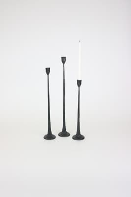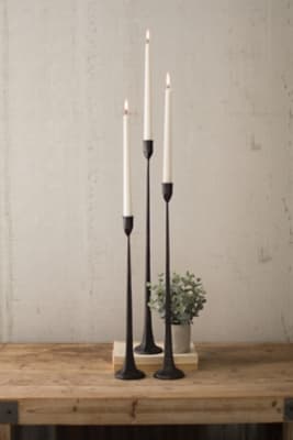 There is nothing more chic than basic black. This set of three tall cast iron taper holders will add height and interest to a table or mantel display.