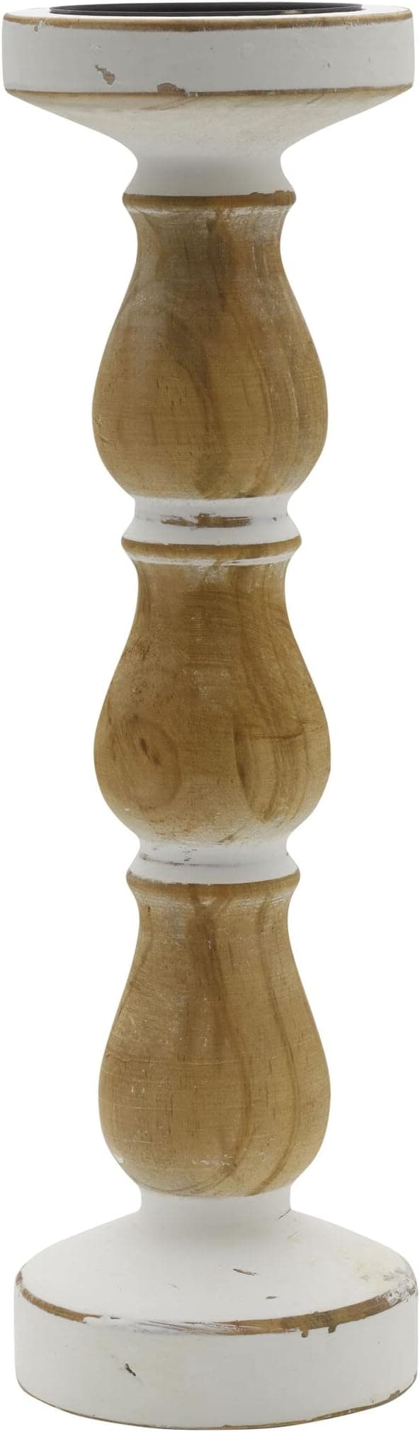 Elements Wood Candleholder, Use with One Real or Flameless Candle, Bedroom, Living Room, Dining Room, Entryway, 4 x 4 x 13.25 Inch, White and Natural