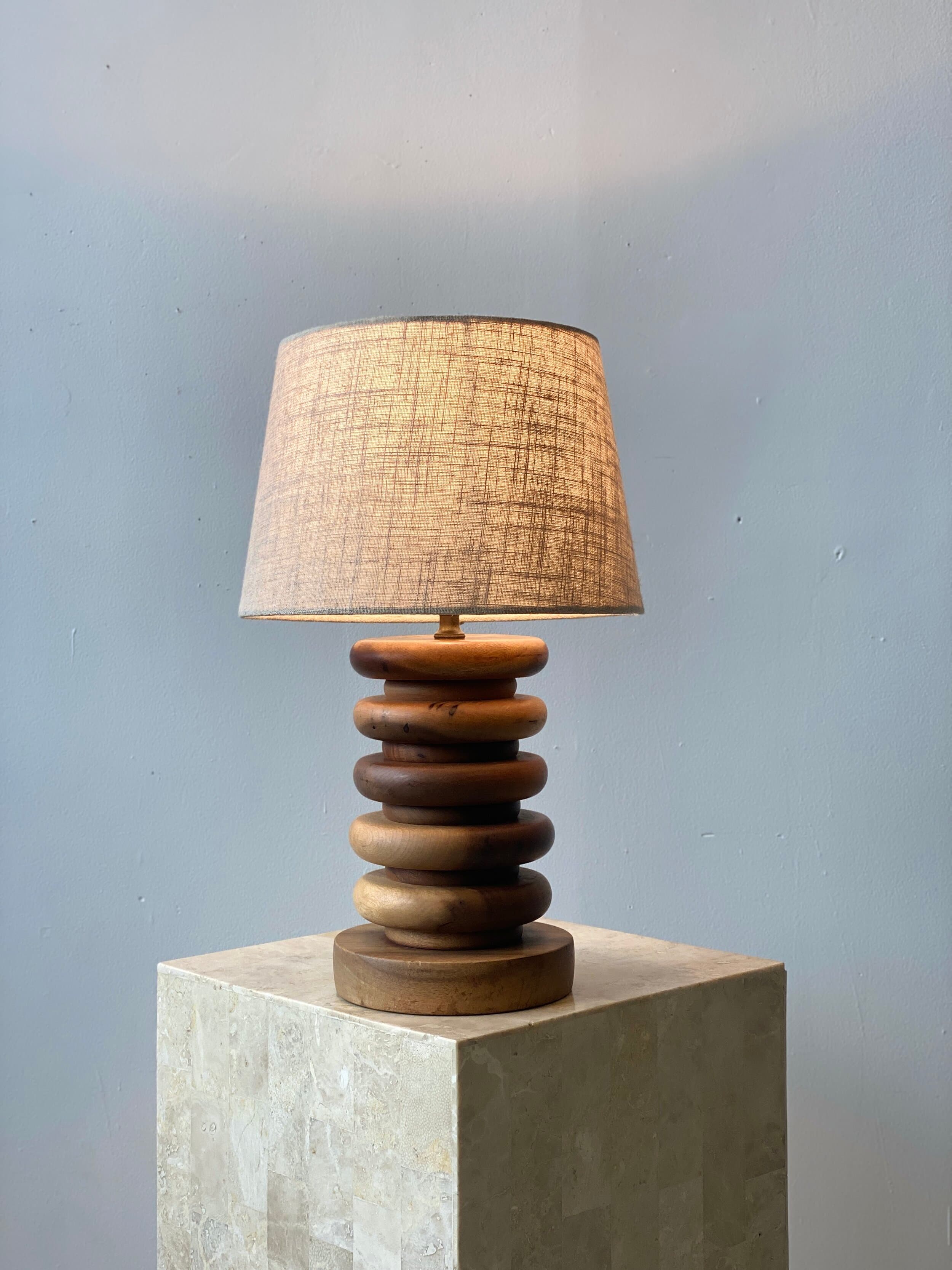 Vintage Stacked Wood Disc Table Lamp, Circa 1950s
