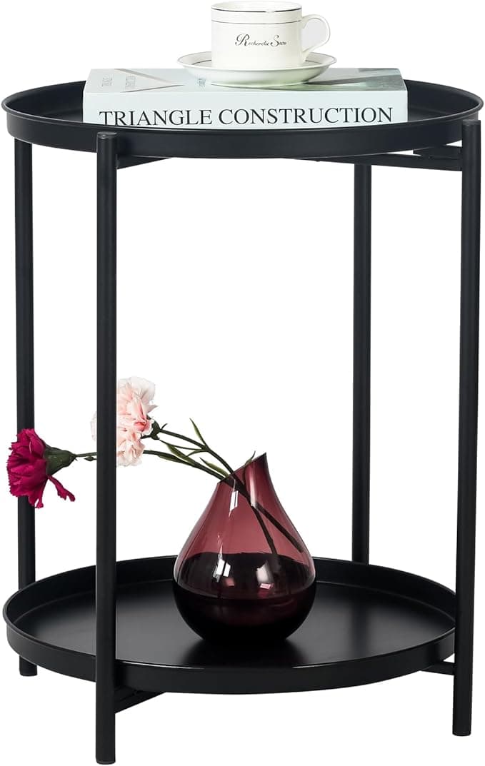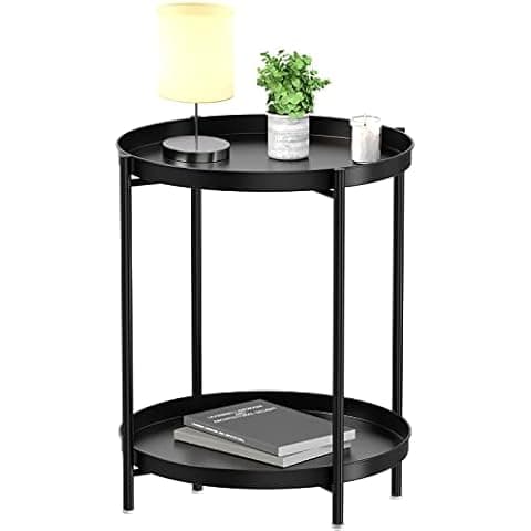 Buy Joveco Small Round Side Table, 2-Tier Metal Foldable End Table with Removable Tray, Modern Bedside Nightstand for Living Room Bedroom, Black: End Tables - Amazon.com ✓ FREE DELIVERY possible on eligible purchases
