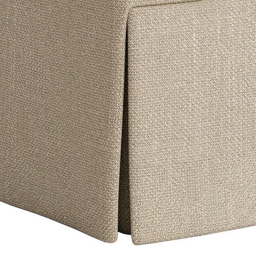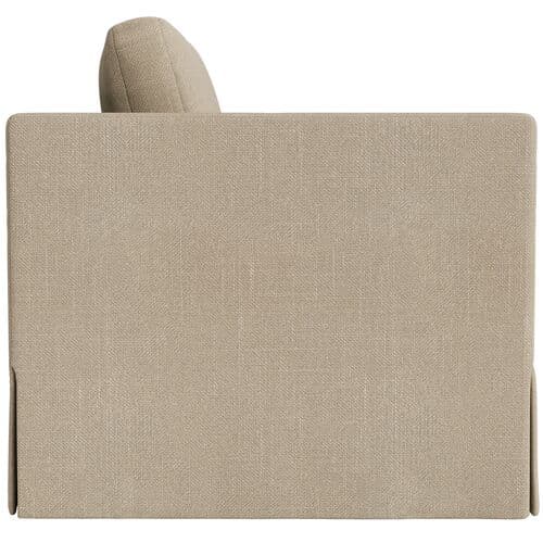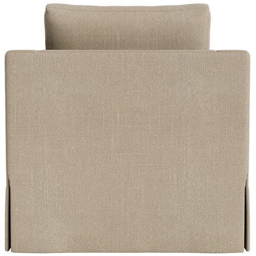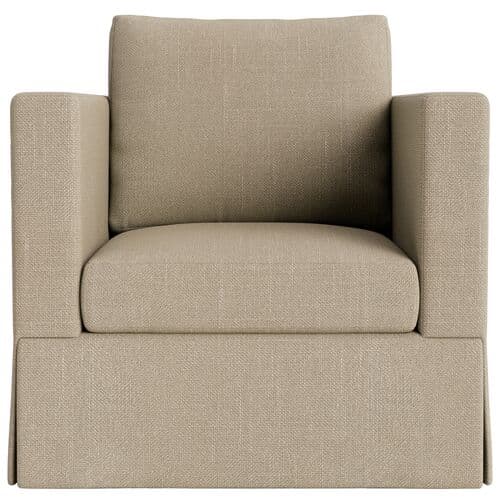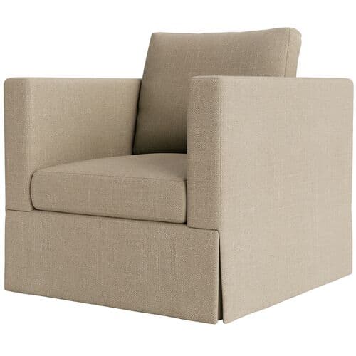 The Brock Chair offers a modern silhouette with a minimalist design. It features deep seating, broad arms, and a tall back cushion for tailored comfort. Crafted in the US from kiln-dried hardwood by skilled furniture makers, the chair's simple yet sculptural form creates a noticeable design impact. The upholstery fabric is performance-protected to ensure durability and ease of care while maintaining an elegant finish. The slubbed linen blend weave offers textured comfort and breathability for a relaxed yet tailored look. Noteworthy features include the use of locally sourced and sustainably harvested hardwood, certified by environmental standards. Upholstery utilizes environmentally responsible performance technology for enhanced durability and cleanability. The chair is filled with a mix of down feathers and polyester fibers for comfort, and all components are hand-assembled in the USA.