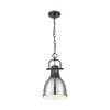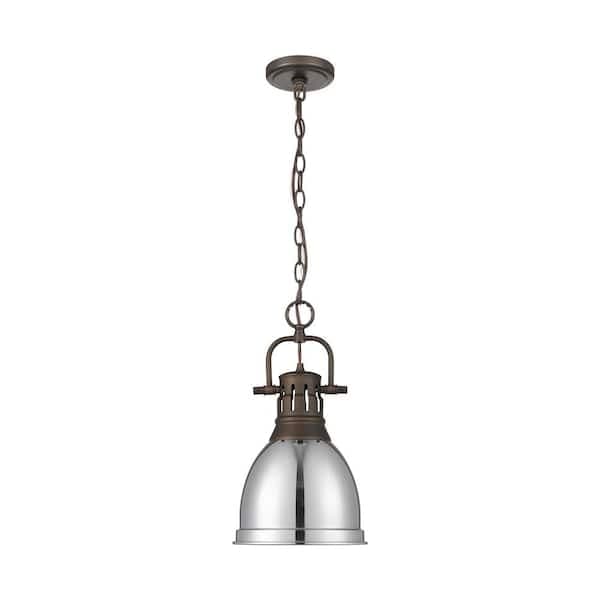 Duncan 100-Watt 1-Light Rubbed Bronze Pendant Light with Silver Shade and No Bulbs Included