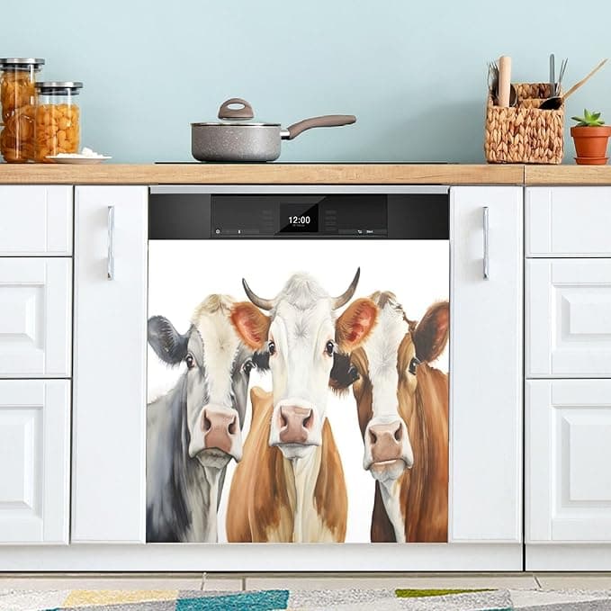 YEGAME Cute Cow Magnetic Dishwasher Sticker, Kitchen Decoration Magnetic Stickers, Waterproof Magnetic Cover for Dishwashers, Refrigerators, Washing Machine 23 W X 26 H Inch