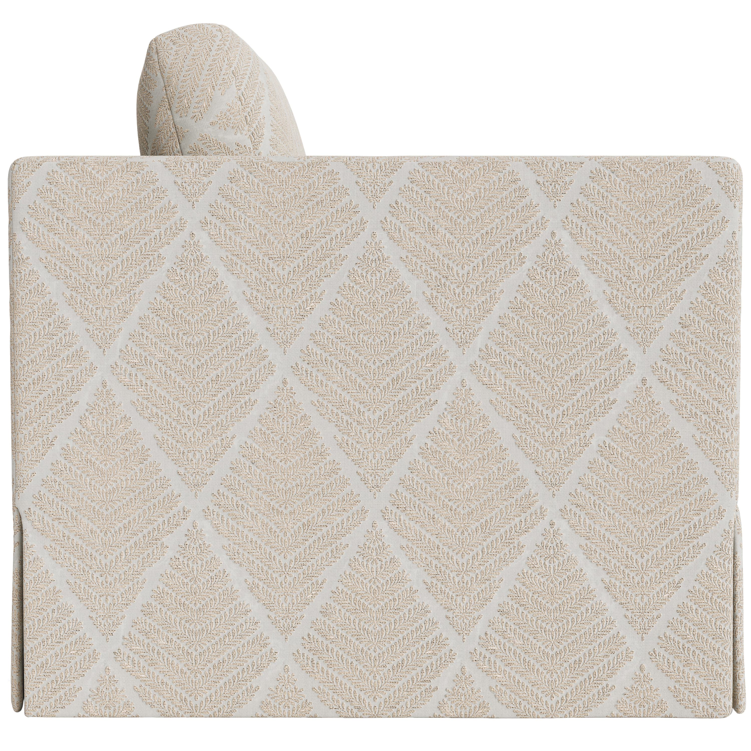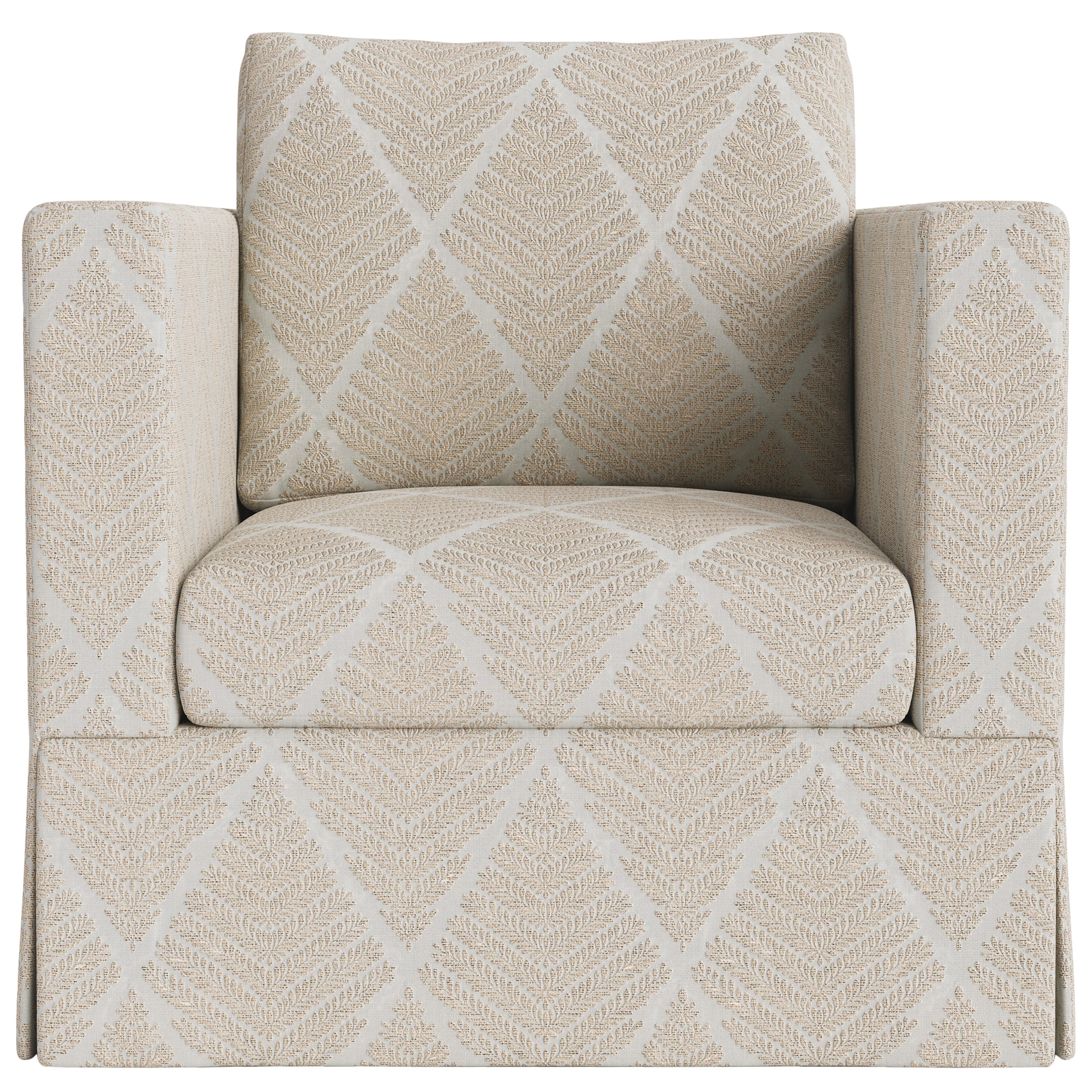 Brock Chair showcases a modern silhouette with a focus on minimalist design. It offers deep seating, wide arms, and a tall cushion back for enhanced comfort. Made in the USA by skilled craftsmen using kiln-dried hardwood, it features a striking form. Upholstery is performance-protected for durability and easy care while keeping an elegant finish. The jacquard fabric is woven for a fern frond design, providing a resilient textile with an easy-to-match pattern. Additionally: • Locally sourced hardwood, sustainably harvested at over double the rate of cutting. • All wood is certified by major environmental organizations. • Upholstery uses PFAS-free Ease Eco Performance® enhancing durability and cleanability. • Cushion fill includes 50% down feather and polyester fiber mix. • All components are hand-assembled in the USA.