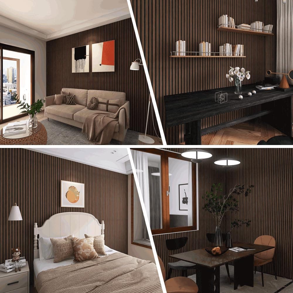 ARTSLAT 4 Packs 3D Wall Panels Peel and Stick | Wall Panels for Interior Wall Decor | Self Adhesive Sound Absorbing Planks | Acoustic Wood Slat Wall Panels | 43.30*12.60in | 0.4" Depth | Black Walnut