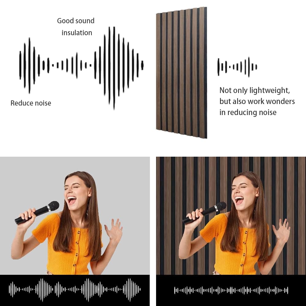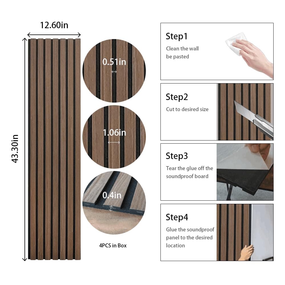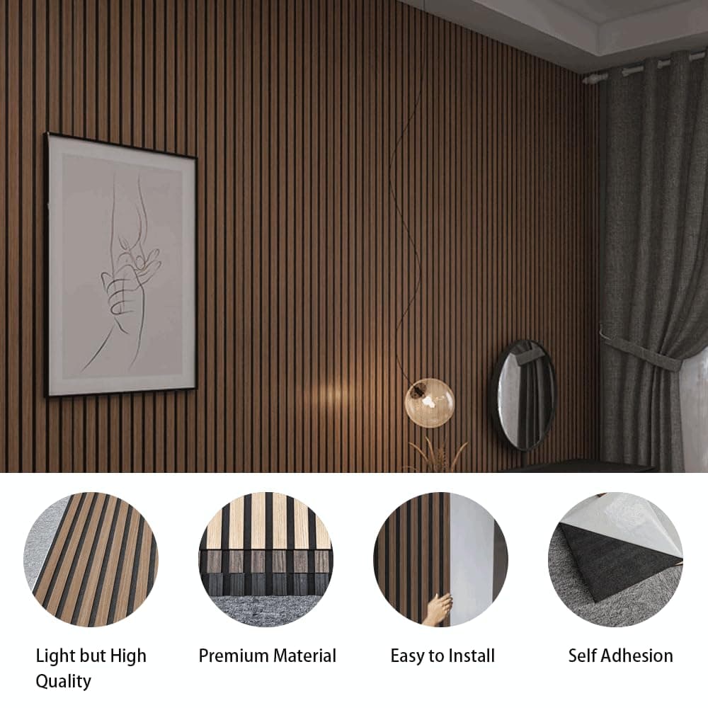Brand: ARTSLAT Color: Black Walnut Features: 【Light but High Quality】: Our peel and stick wall panels are lightweight yet made of high-quality materials, ensuring durability and a premium finish in your space. 【Premium Material】: With a combination of wood veneer and soundproof felt, our panels not only look stylish with a natural wood appearance but also help reduce noise for a more peaceful environment. 【Easy to Install】: Installation is a breeze – Not only can you easily stick them flat on the wall, but you can also roll them up to apply on curved surfaces like pillars. Plus, they're thin enough to be cut with scissors and can even be applied to the ceiling for a complete room transformation. 【Product Specifications】: Each pack includes 4 pieces measuring 43.30 inches * 12.60 inches, providing you with enough coverage to transform your room. 【High-End Style】: Whether it's your living room, recording room, bedroom, meeting room, TV background, game room, or home theater, our panels offer a touch of luxury and sophistication to elevate the look of any space.