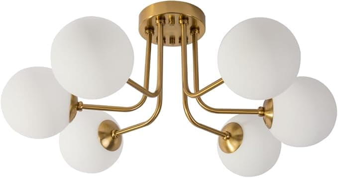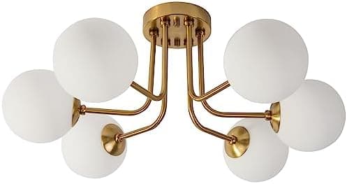erpymi Modern Semi Flush Mount Ceiling Light 6-Light,Globe White Glass Shade Semi Flush Mount Ceiling Light Sputnik Chandeliers for Bedroom Living Room Hallway Dining Room Lighting Fixture - Amazon.com