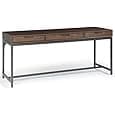 SIMPLIHOME Banting SOLID WOOD and Metal 72 inch Wide Home Office Desk, Writing Table, Workstation, Study Table Furniture in Walnut Brown with 2 Drawers