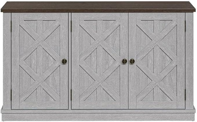This buffet table is perfect for your dining room, living room, or bedroom alike. This 48" wide buffet table features a 3-door 2-cabinet design - a 1/3 wide on the left side and 2/3 wide on the right side. Each cabinet features up to 3 adjustable open shelves. Its ranch rustic style would perfectly match your current décor. The perfect place to store your extra dishes and china.