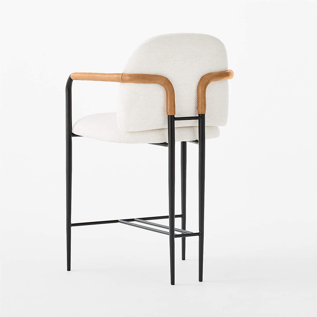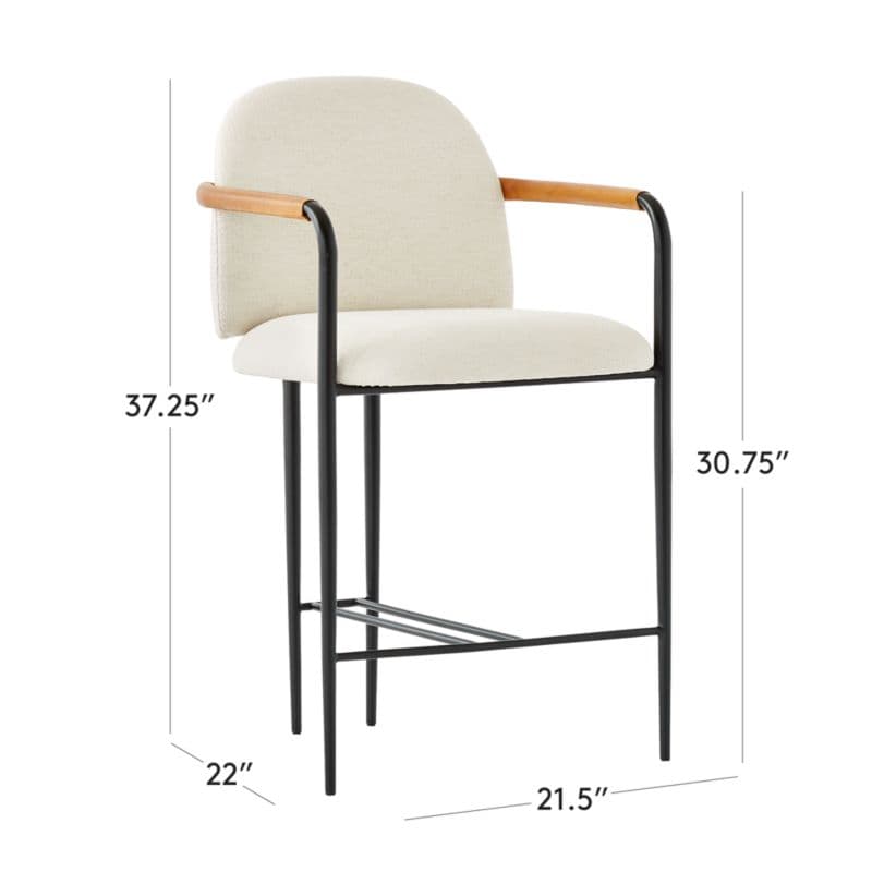 Currently on sale. Explore the Avont Upholstered White Performance Fabric Counter Stools Set of 2. Displaying a strong, architectural shape, this counter stool takes inspiration from classic Brutalist design, updated with warm and organic finishes.