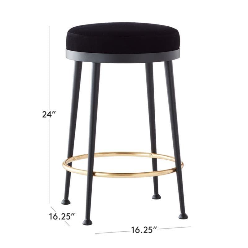 Atlas Black Velvet Counter Stool Set of 2 + Reviews | CB2