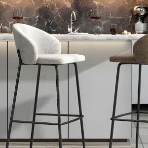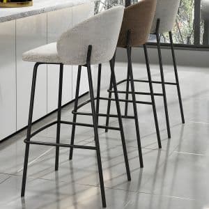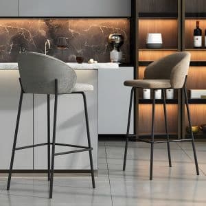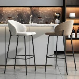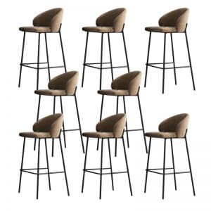 Mid-Century Modern Bucket Seat Bar Stool with Upholstered Fabric and Black Metal Frame - 8 Piece Set Khaki Counter Stool(26"H)
