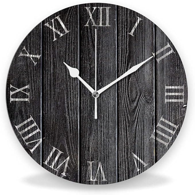 ACOZUHSE Silent Non Ticking Rustic Wall Clock, Wooden Black Clock Roman Numerals Clocks, Battery Operated 9.8"x9.8" Round Wall Clock for Kitchen, Living Room, Bedroom, Office