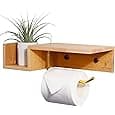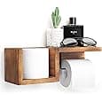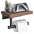 Wall Mount Toilet Paper Holder, Floating Rustic Style WC Roll Rack with Shelf from Steel, Unique Black TP Storage with Charcoal Wood, Farmhouse Design