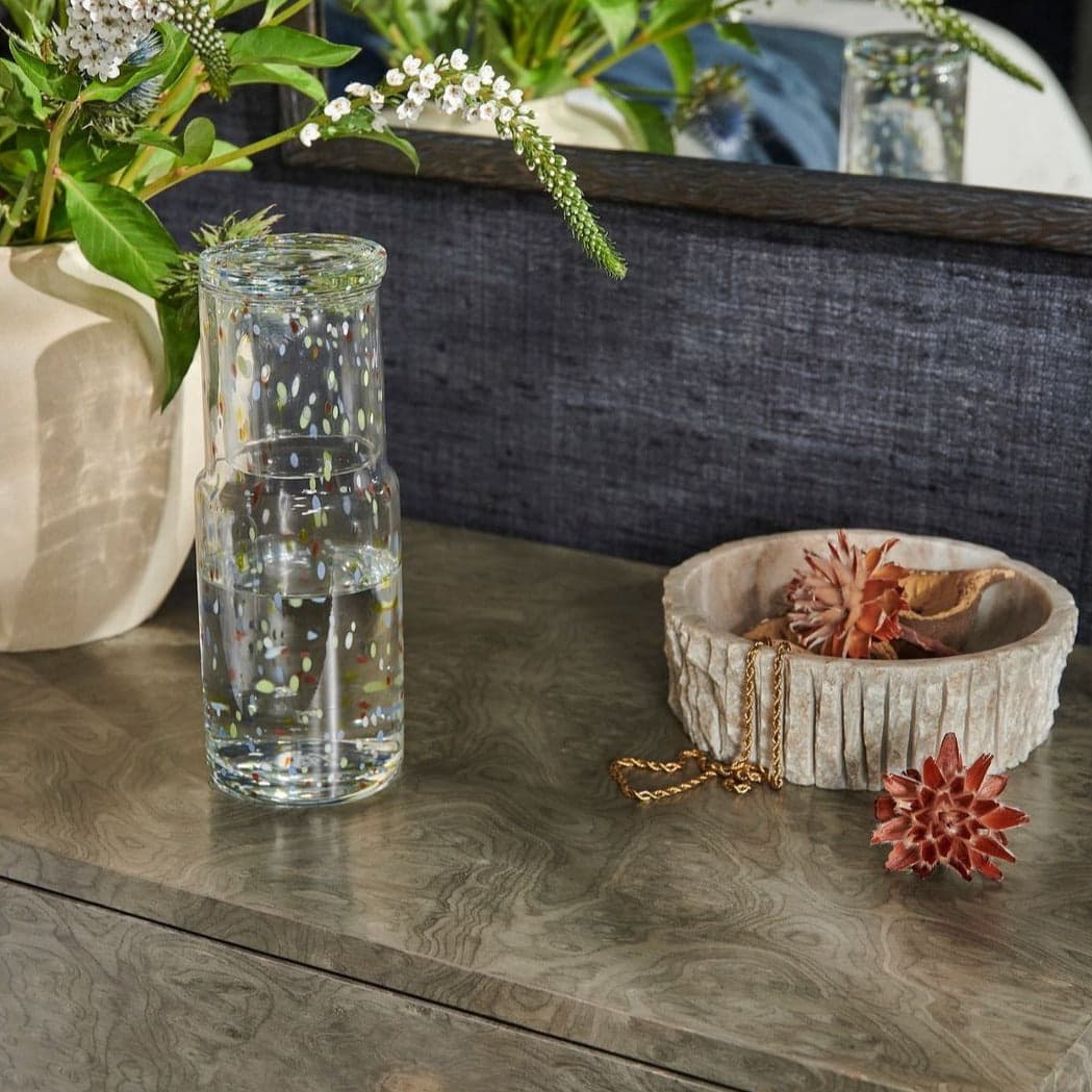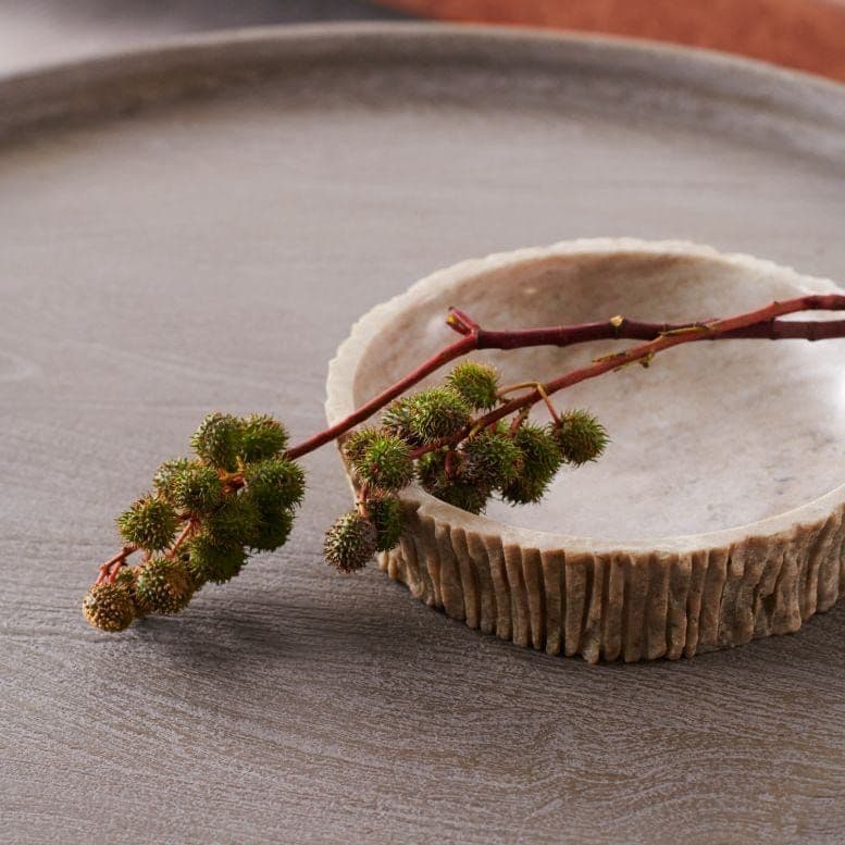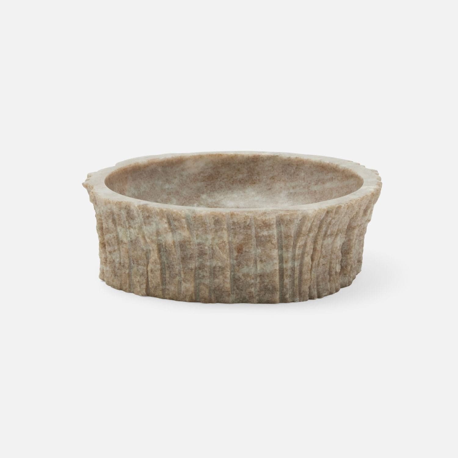 The Zakai Bowl in Small from Made Goods features a smooth marble design that's a little rough around the edges. The bowl's polished interior beautifully contrasts with an imperfectly carved linear texture on the exterior.