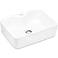 PetusHouse Bathroom Vessel Sink and Pop Up Drain Combo, 20‘’ Rectangle Above Counter White Porcelain Ceramic Bathroom Vessel Vanity Sink Washing Art Basin, Overflow Type