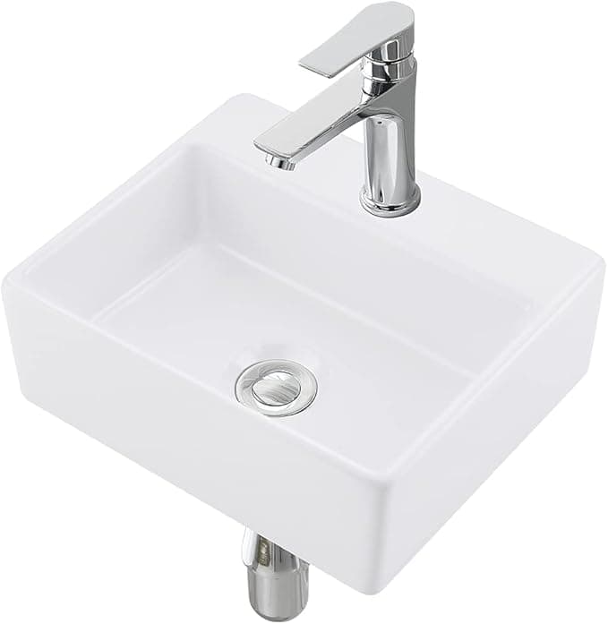 VASOYO 16x12 Inch Wall Mount Ceramic Bathroom Sink - Rectangle Vessel Sink with Faucet Hole, Perfect for Small Bathrooms