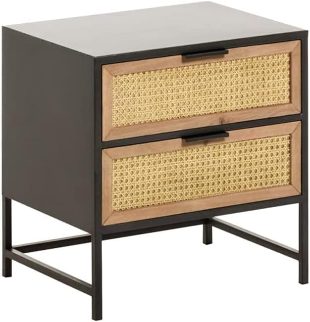 ZHQZXC Night Stand Double Drawer Bedside Table Simple Wrought Iron Bedside Storage Cabinet Bedroom Storage Side Cabinet Industrial Style Living Room Side Table Accent Table